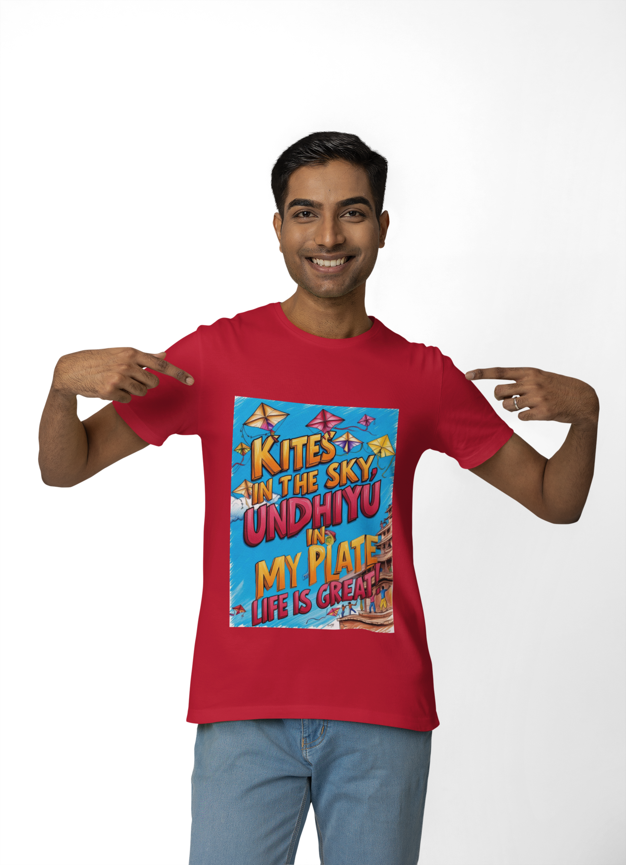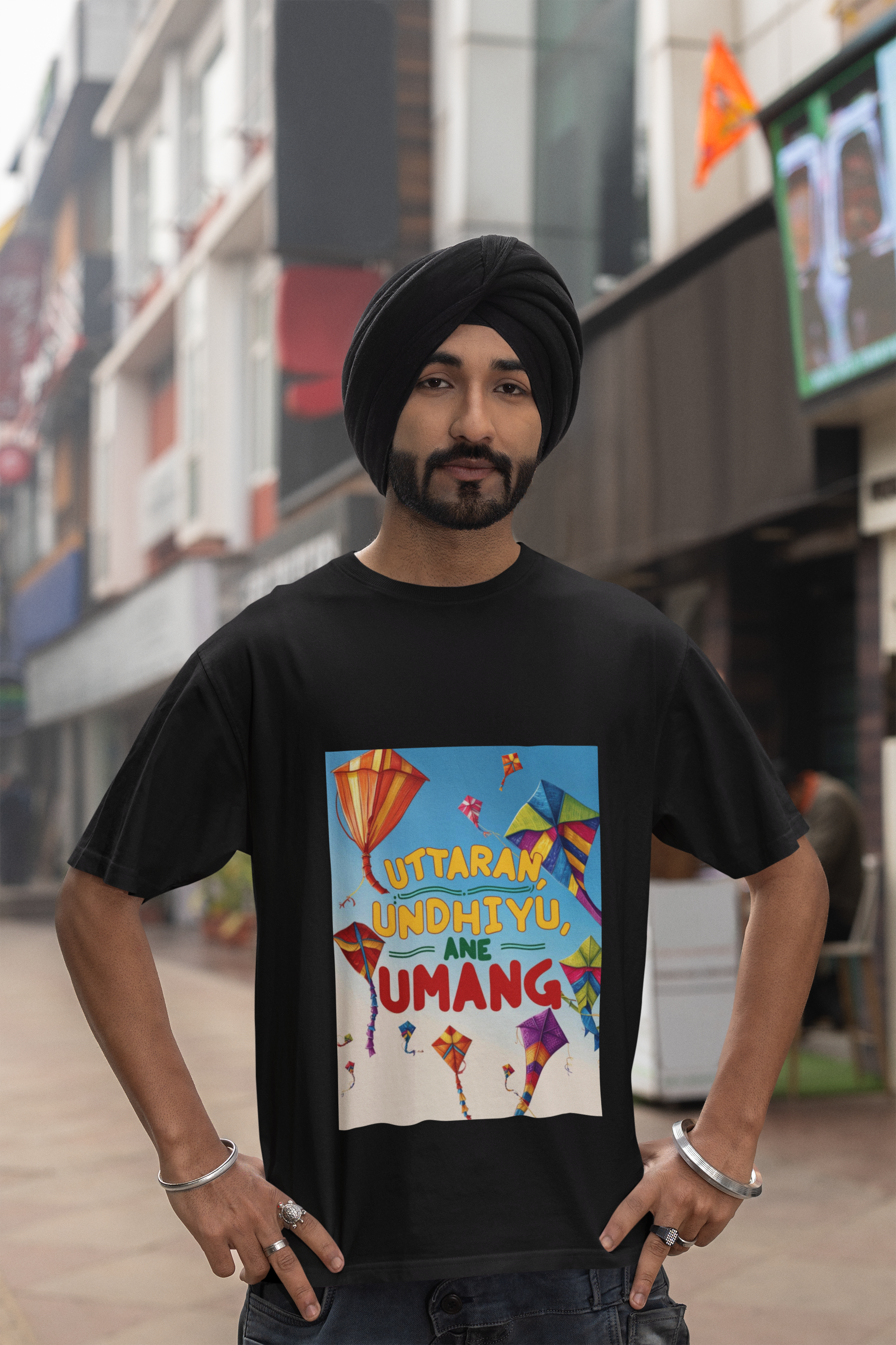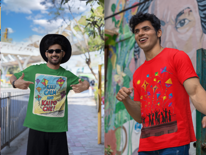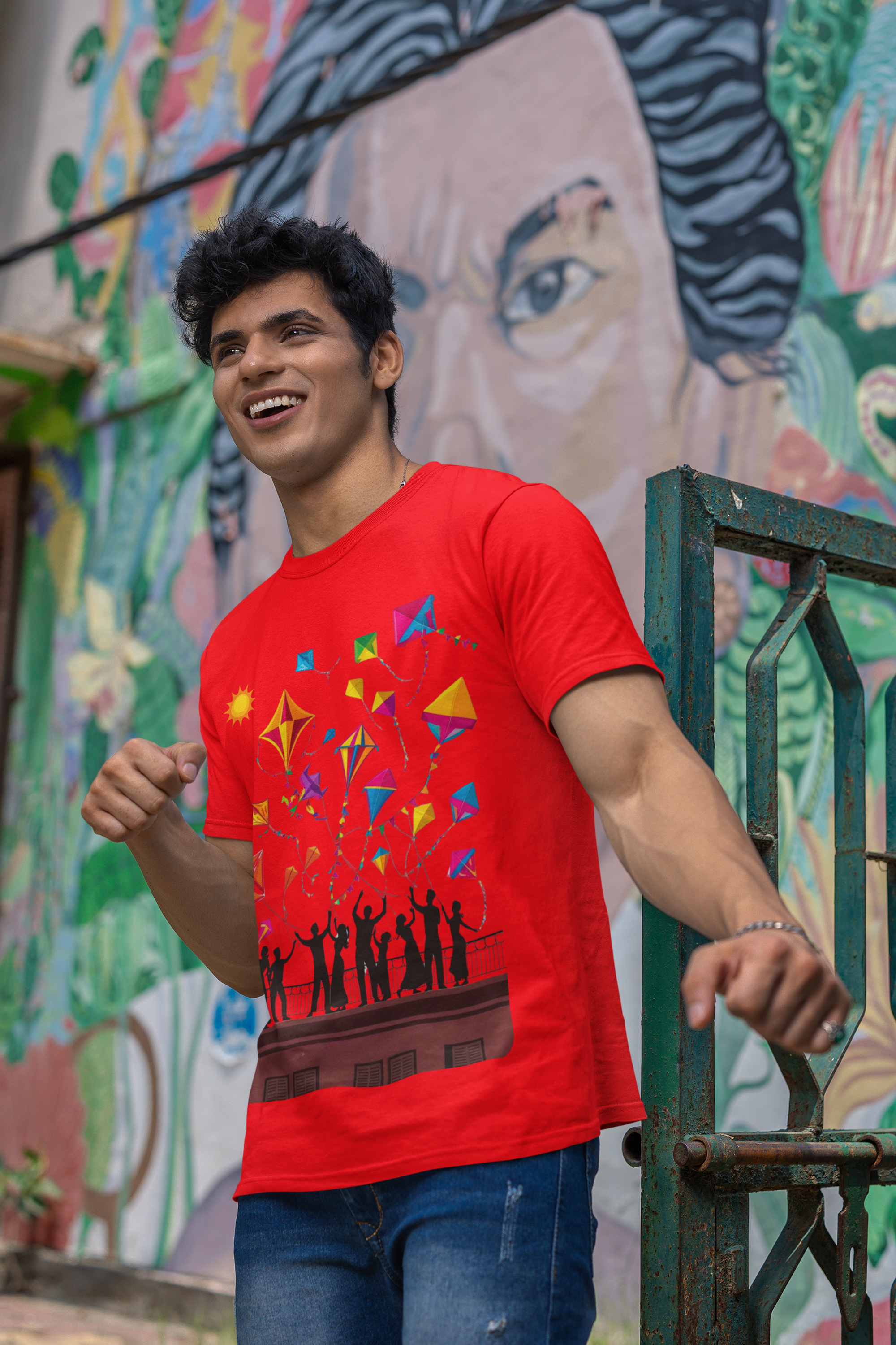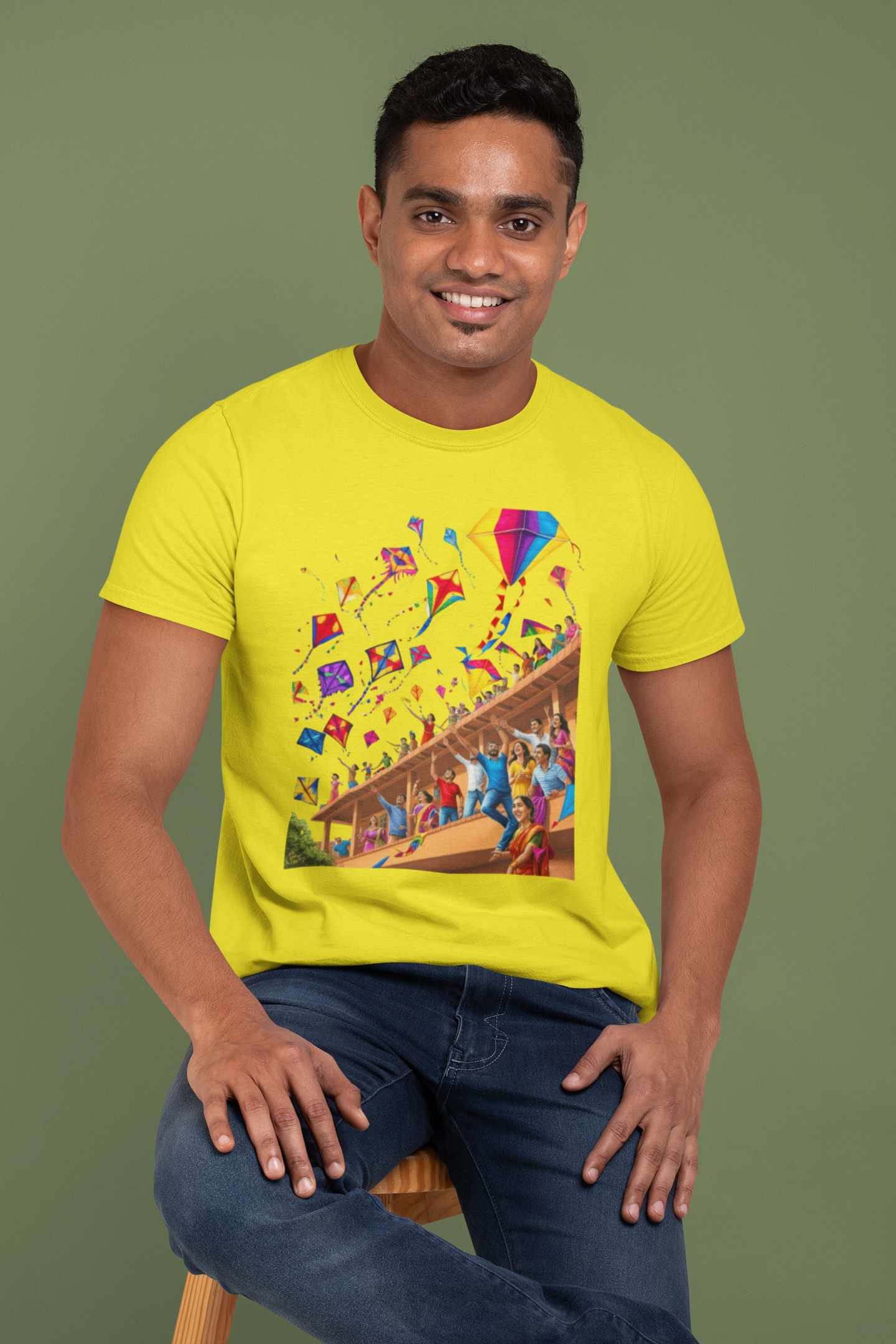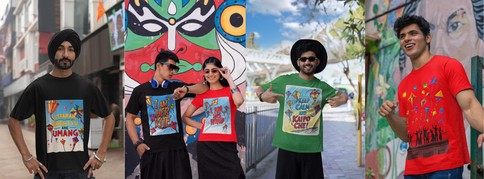 Celebrate Gujarat's vibrant Uttarayan Kite Festival with our exclusive t-shirt designs.